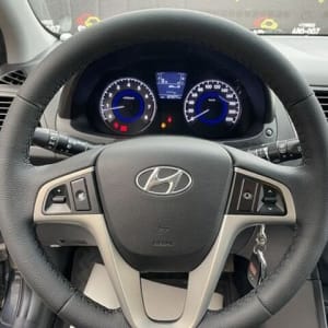 Hyundai Solaris 2014 года выпуска. Хетчбэк черного цвета. 1.6/123л.с 5ст.МКПП,ABS,SRS,Усилитель руля, датчик света, кондиционер, 4эл. стеклоподъемника, эл. привод зеркал, линованная оптика, дневные ходовые огни, центральный замок, AUX/USB, подогрев пер. сидений, кожаный руль с управлением, противотуманные фары. Полный комплект ключей.
