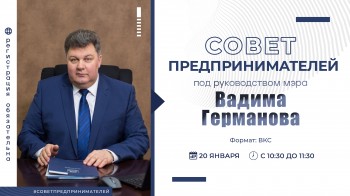 20 января 2023 года с 10.30 до 11.30 состоится Совет предпринимателей под руководством мэра Череповца Вадима Германова .
