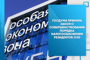 Госдума приняла закон, совершенствующий порядок налогообложения резидентов особых экономических зон (OЭЗ), а также резидентов территорий опережающего развития и свободного порта Владивосток.