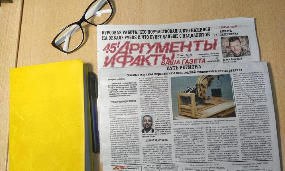 Областная газета «Аргументы и факты» об исследовании ВолНЦ РАН на тему структурной перестройки экономики региона