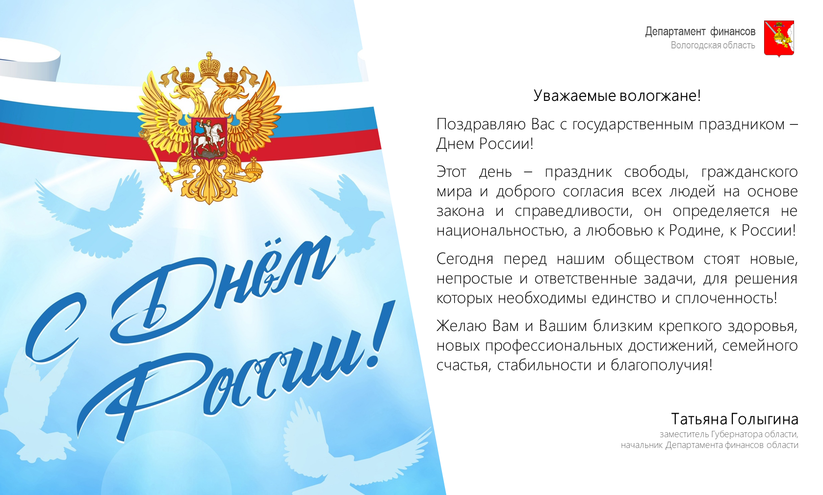 Пусть в душе каждого гражданина будет место для любви к своей Родине. Гордитесь нашей страной, делайте всё для её процветания, и пусть у вас всё будет хорошо!