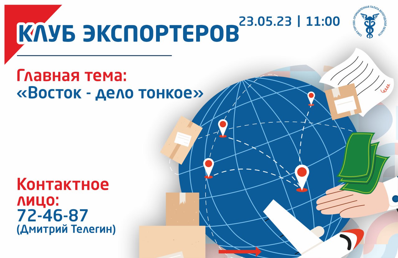 Вологодская ТПП приглашает принять участие в Клубе Экспортеров Вологодской области - 23 мая!