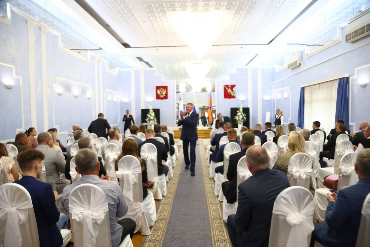 Федеральных и региональных наград удостоились 68 человек. Среди награжденных - оператор поста управления стана горячей прокатки Александр Щеглев, который трудится на меткомбинате уже свыше 30 лет. Из рук главы региона он сегодня получил медаль ордена «За заслуги перед Отечеством II степени».