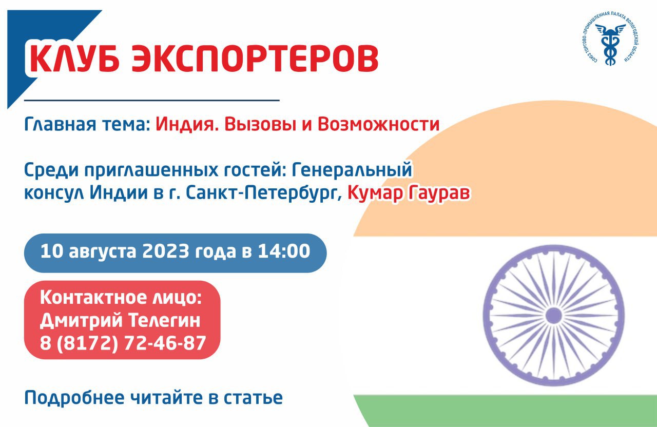 Приглашаем экспортеров и импортеров Вологодской области принять участие в заседании Клуба Экспортеров при Вологодской ТПП.