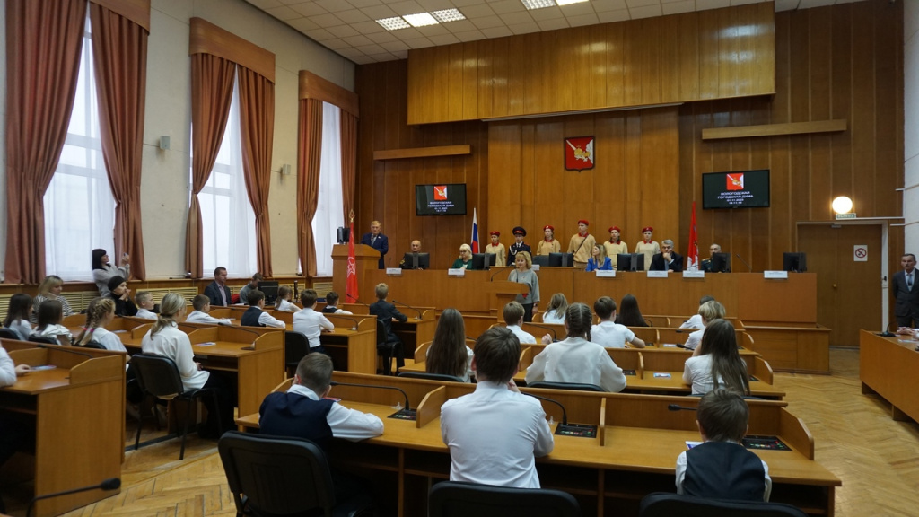 В большом зале Вологодской городской Думы прошла юнармейская линейка.