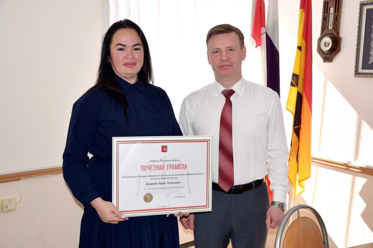 Почётная грамота Главы округа за личный вклад в развитие местного самоуправления Тотемского муниципального округа и в связи с Днём местного самоуправления