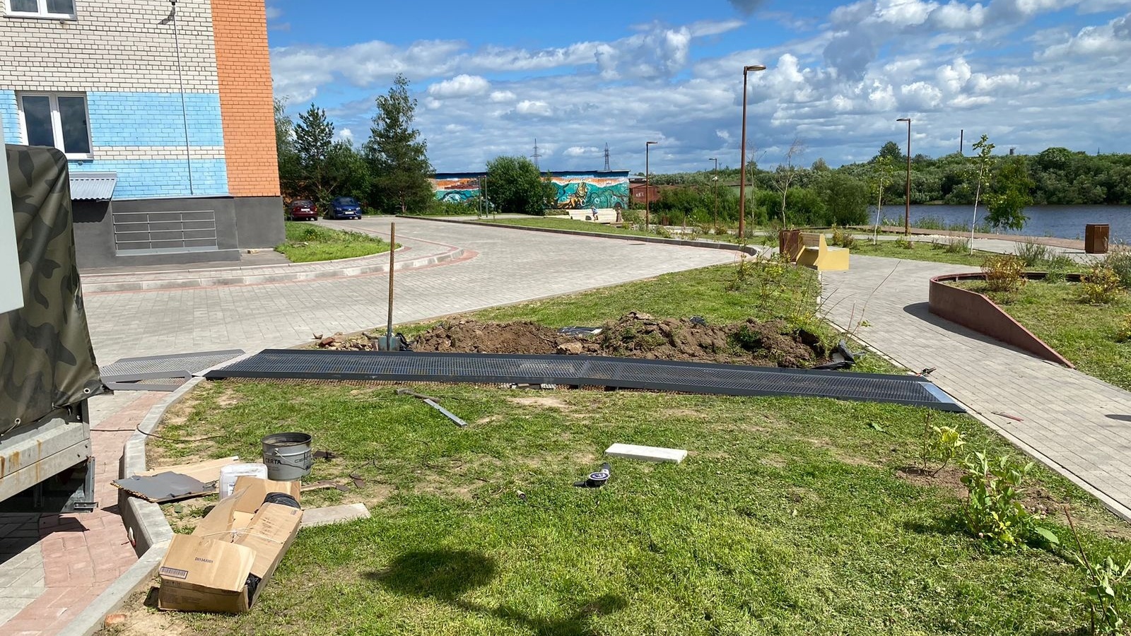 « Был запрос от жителей. Во время рабочего выезда и. о. Мэра Андрея Накрошавева и заместителя Губернатора Вологодской области Сергея Жестянникова вологжанка, мама инвалида-колясочника, попросила установить пандус, чтобы ребёнок мог переехать через газон на берег. До этого не было ни одного перехода для маломобильных граждан. Теперь проблема решена», – рассказал директор «Парков Вологды» Юрий Коневич.