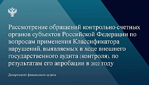 30 марта 2023 года при технической поддержке Портала Счетной палаты Российской Федерации и контрольно-счетных органов Российской Федерации Департаментом финансового аудита аппарата Счетной палаты Российской Федерации проведен семинар на тему «Рассмотрение обращений контрольно-счетных органов по вопросам применения Классификатора нарушений, выявляемых в ходе внешнего государственного аудита (контроля), по результатам его апробации в 2022 году».