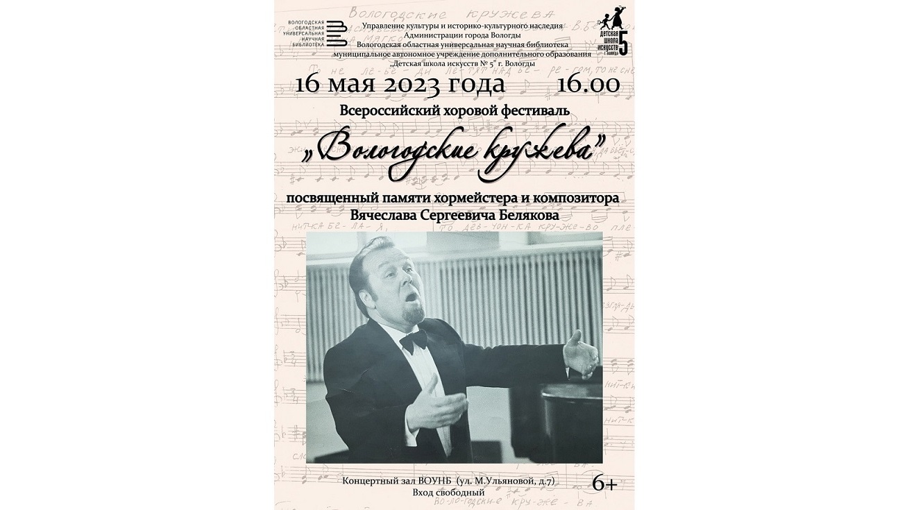 Всероссийский хоровой фестиваль «Вологодские кружева» имени хормейстера и композитора Вячеслава Белякова пройдет в Вологде.