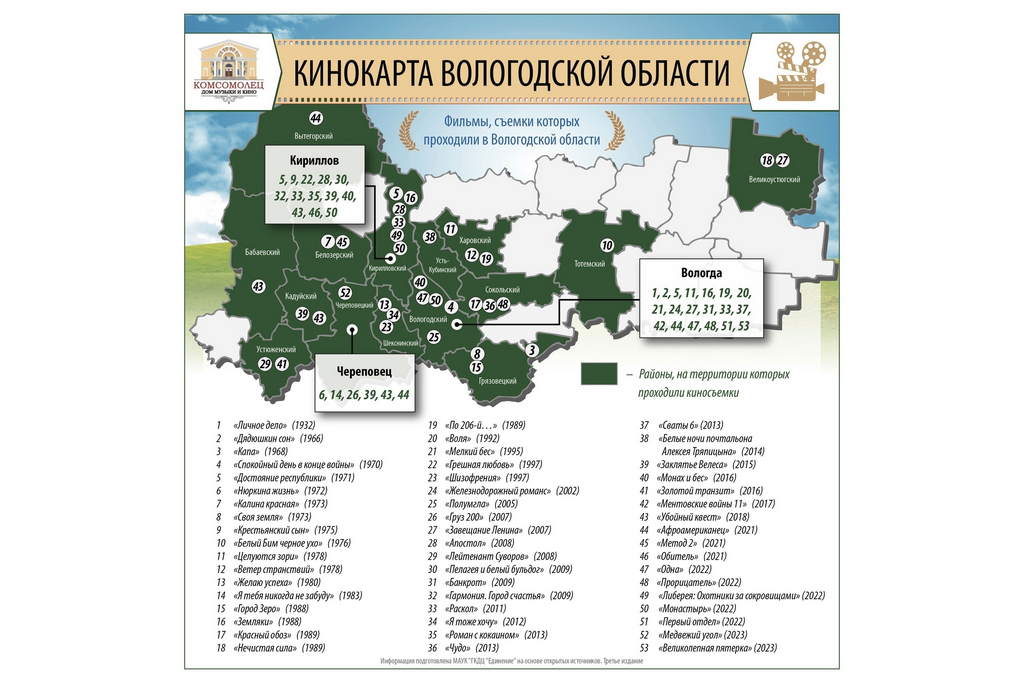 На карту попали еще семь фильмов и сериалов, частично или полностью снятых в Вологодской области.