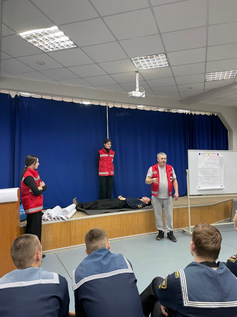 8 ноября 2023 г. в актовом зале Велико-Устюгского филиала ФГБОУ ВО «ГУМРФ имени адмирала С.О. Макарова» для обучающихся 2 курса проходил классный час на тему «Оказание первой медицинской помощи».