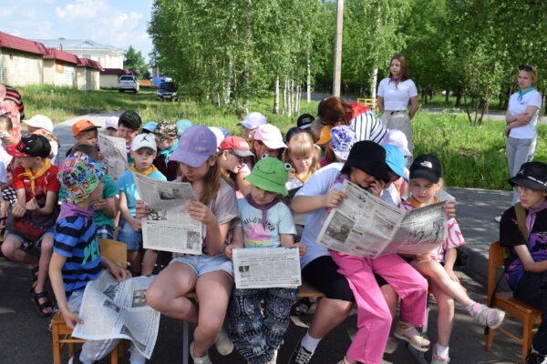 Участники лагеря «Сиверские узоры – 2024» знакомятся со свежим номером «Новой жизни».