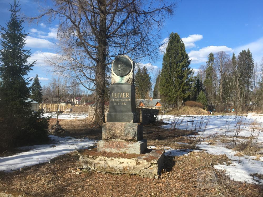 На полпути к этому по левой руке – неогороженная могила с надгробием, увенчанным большим медальоном с отлитым из металла портретом. Читаем золотые буквы надгробного памятника: «Лев Александрович Чугаев. 1873-1922».