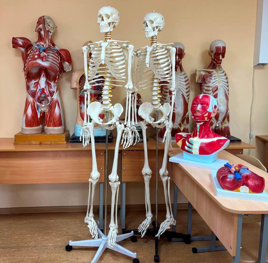Начало начал – изучение строения тела человека по системам. Первый раздел, который даётся непросто – это остеология. Модель скелета в натуральную величину позволит студентам наглядно изучить строение черепа, позвоночного столба, грудной клетки, таза, костей верхних и нижних конечностей, на старших курсах при изучении клинических дисциплин будет являться «немой» подсказкой для повторения границ органов и их проекции на скелет.