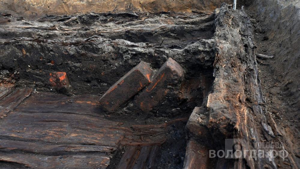 «На территории памятника «Городище XII–XV вв. — место основания города Вологды» сейчас исследуется более 3 тыс. квадратных метров культурного слоя. Половина из этой площади уже исследована полностью. Неподалеку от трассы путепровода на самой возвышенной части берега Кайсарова ручья, которая отмечена в 2008 году часовней Герасима Вологодского, располагался Троице-Герасимовский монастырь. А здесь, на склоне, ведущем к реке Вологде, обнаружен целый ряд объектов: подпечные ямы, колодцы, ледник, разнообразные сооружения поселенческого характера и участок погребения православного кладбища, которые относятся к удаленному времени, это XVII век и ранее», — отмечает Александр Валерьевич.