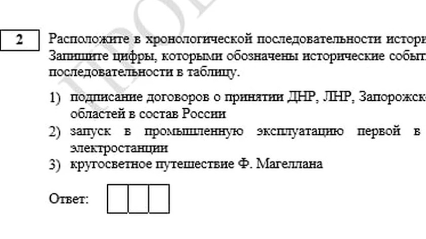 В частности, выпускникам предлагается расположить в хронологическом порядке три события, одно из которых - подписание договоров о принятии ДНР, ЛНР, Запорожской и Херсонской областей в состав России. Еще одно задание - установление соответствия между событиями и их непосредственными участниками. В числе событий приводится военная операция на Украине, а в числе участников - командир артиллерийского реактивного дивизиона народной милиции ДНР Ольга Качура. Она погибла в 2022 году под артобстрелом.