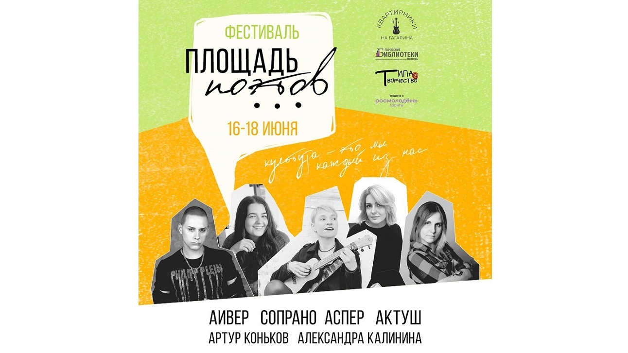 С 16 по 18 июня в Вологде пройдет трехдневный творческо-образовательный фестиваль «Площадь поэтов», который включает три направления: «Сонграйтинг», «Поэзия» и «Проза».