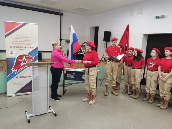 Руководитель юнармейского отряда «Барс» Ольга Владимировна Шабарова рассказала о деятельности юнармейцев: «Нашему юнармейскому отряду 22 февраля исполнилось 6 лет. Тогда состоялся первый приём в Юнармию. Мы были первым юнармейским отрядом в Кирилловском районе, поэтому было сложно. А началось всё с письма администрации Кирилловского муниципального района о необходимости проведения в 2016-2017 учебном году разъяснительной работы со школьниками и родителями о новом движении. Просмотрев в интернете информацию, почитала устав, задачи, цель и подумала: «Хотя это что-то новое, но смахивает на пионерию, юнармейцы были и там, значит осилим».