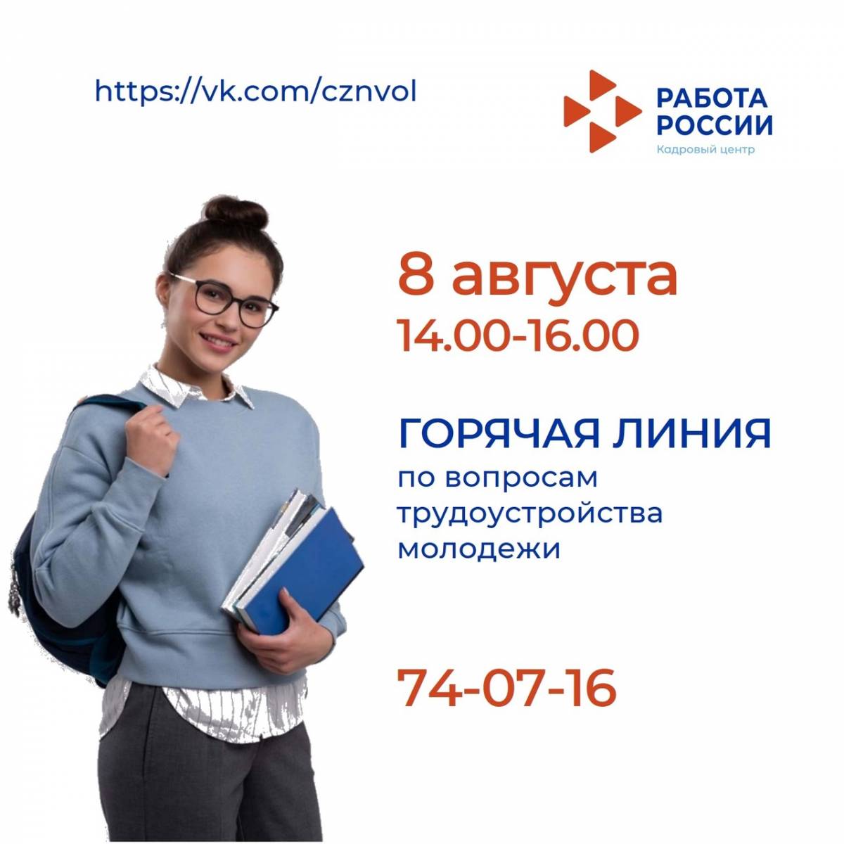 Вопросы, связанные с занятостью молодежи, станут темой горячей телефонной линии, которую специалисты отделения занятости населения по городу Вологде и Вологодскому району, представители от «Единой России» проведут 8 августа с 14.00-16-00. Вопросы от вологжан принимаются по номеру телефона (8172) 75-31-12.