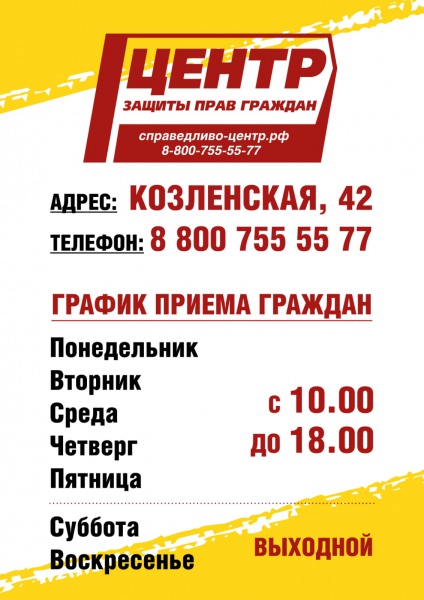 Прием граждан проводится по адресу: Вологда, ул. Козленская, 42. Центр работает по будням с 10 до 18 часов. Подробности можно уточнить по телефону: 8 (817) 2 26-43-88.