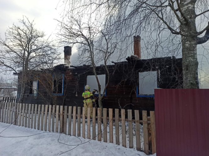 Около шести утра спасателям сообщили о возгорании в деревне Тимошкино. Вспыхнул двухквартирный деревянный дом №6 по улице Ленина. Несмотря на усилия трех десятков человек здание площадью 160 квадратных метров выгорело практически дотла.