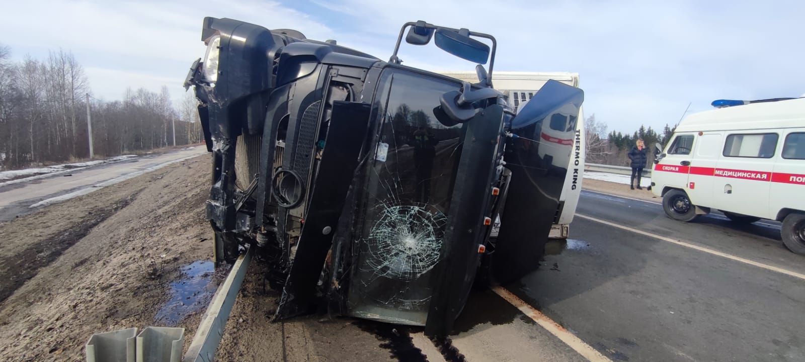 Инцидент произошёл на 76 километре автодороги «Вологда-Тихвин Р21 «Кола» днём 1 апреля. По предварительной версии, водитель грузовика не справился с управлением и выехал на полосу встречного движения, где врезался в отбойник. Пытаясь вернуться на свою полосу движения, он столкнулся с автомобилем «Форд Фокус» и опрокинулся. Падая, грузовик зацепил автомобиль «Шкода». В «Шкоду» также врезался «Фольксваген Поло», водитель которого пытался уйти от столкновения с грузовиком.