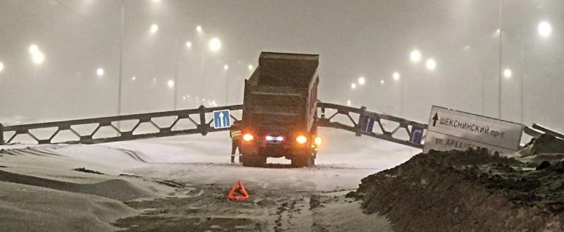 Рухнувшая ферма с дорожным знаками перекрыла проезд на улицу Кабачинскую в Череповце