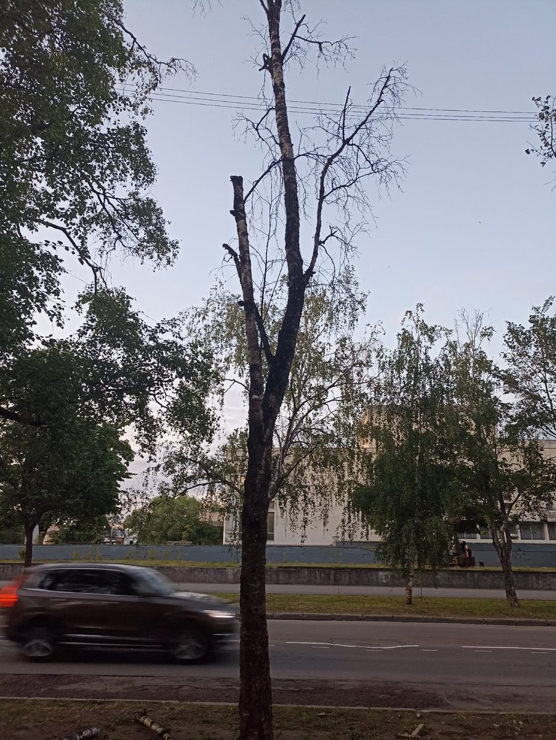 «Советский проспект, по направлению из центра. Напротив Драмтеатра обломилась вершина – чуть ли не на прохожих. И на противоположной стороне сухая берёза», — написал в соцсетях житель областной столицы, заодно опубликовав и фото в качестве доказательства.