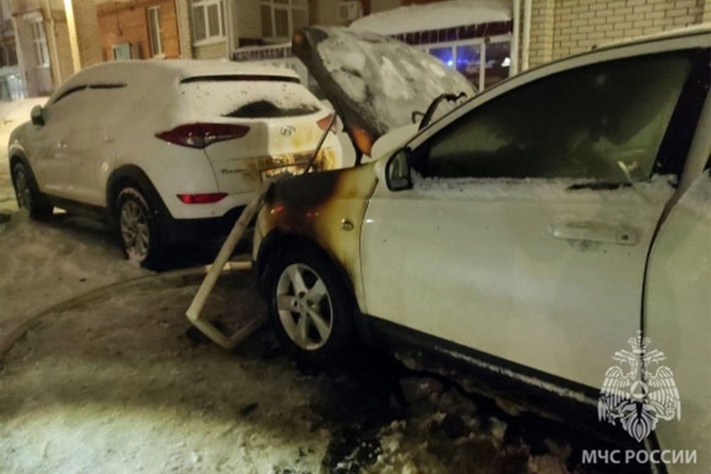 Происшествие случилось сегодня в два часа ночи на Батюшкова у дома № 7а. Загорелся «Ниссан-Кашкай», огонь повредил рядом стоящий «Хёндай-Туссон».