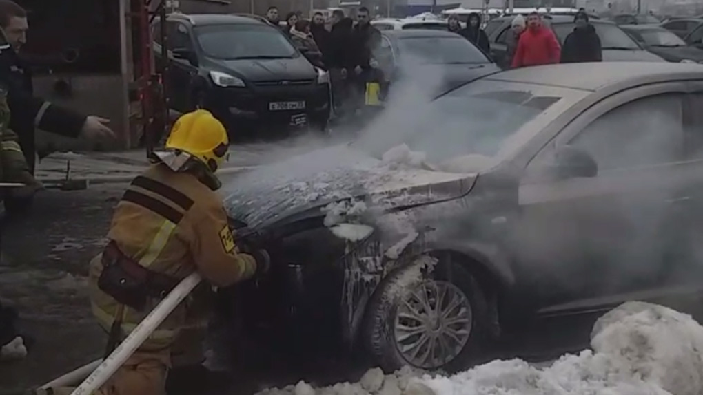 По словам очевидцев, у Kia Ceed самовоспламенился моторный отсек, заклинило капот. Автолюбители стали сбегаться с огнетушителями, быстро приехали пожарные.