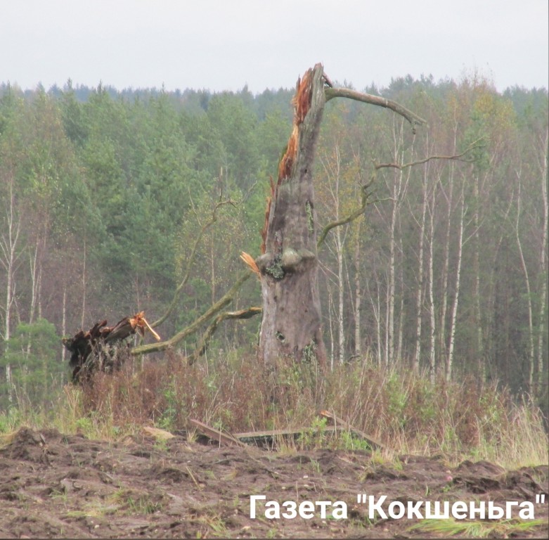 «Вот всё, что осталось от сосны Красавы после непогоды. Напомним, что она воспринималась нашими предками как богиня в обличье дерева», — сообщает газета Тарногского округа «Кокшеньга»