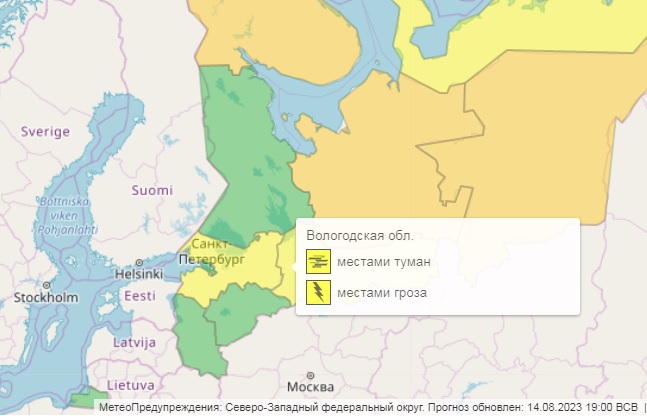 В Вологодской области вновь объявлен «желтый уровень погодной опасности», и связано это с грозами и туманом, который обещает немного похозяйничать в нашем регионе: