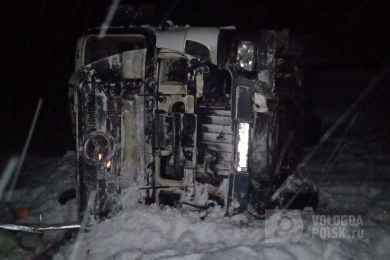 Водитель из Подмосковья чудом выжил после полета в кювет на фуре в Вологодской области