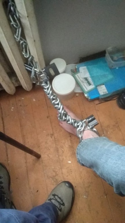 В Вологде на улице Преображенского в одной из квартир был обнаружен мужчина, сидящий на полу, а его левая нога была обмотана цепью и зафиксирована замком, сама цепь была зацеплена за радиатор отопления: