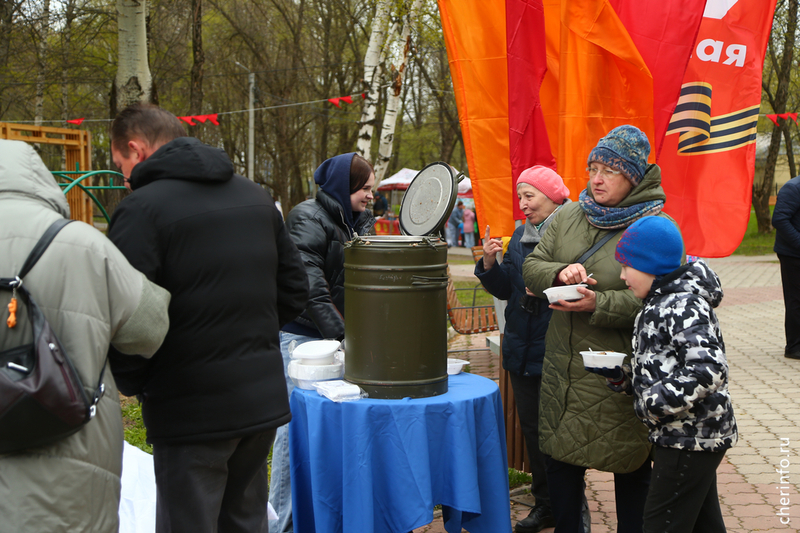 «У нас здесь два мастер-класса, на которых можно сделать открытку и украсить георгиевские ленточки. Есть фотозоны: можно примерить военную форму, атрибутику и сделать фото на память. Выступают городские коллективы, студенты ЧГУ покажут театрализованное представление. Работают игровые зоны и аттракционы. Бесплатно можно попробовать солдатскую кашу», — рассказала директор ДК «Строитель» Мария Загребина.