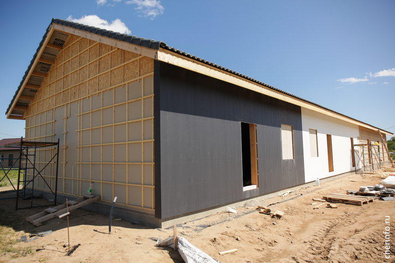 Снаружи таунхаусы отделают фиброцементным сайдингом, кровлю покроют цементно-песчаной черепицей. Секции будут разделены двойной стеной с утеплением и гипсокартоном.