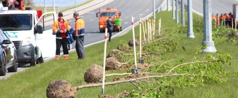 Сотню взрослых кленов высадили на разделительном газоне Южного шоссе в Череповце