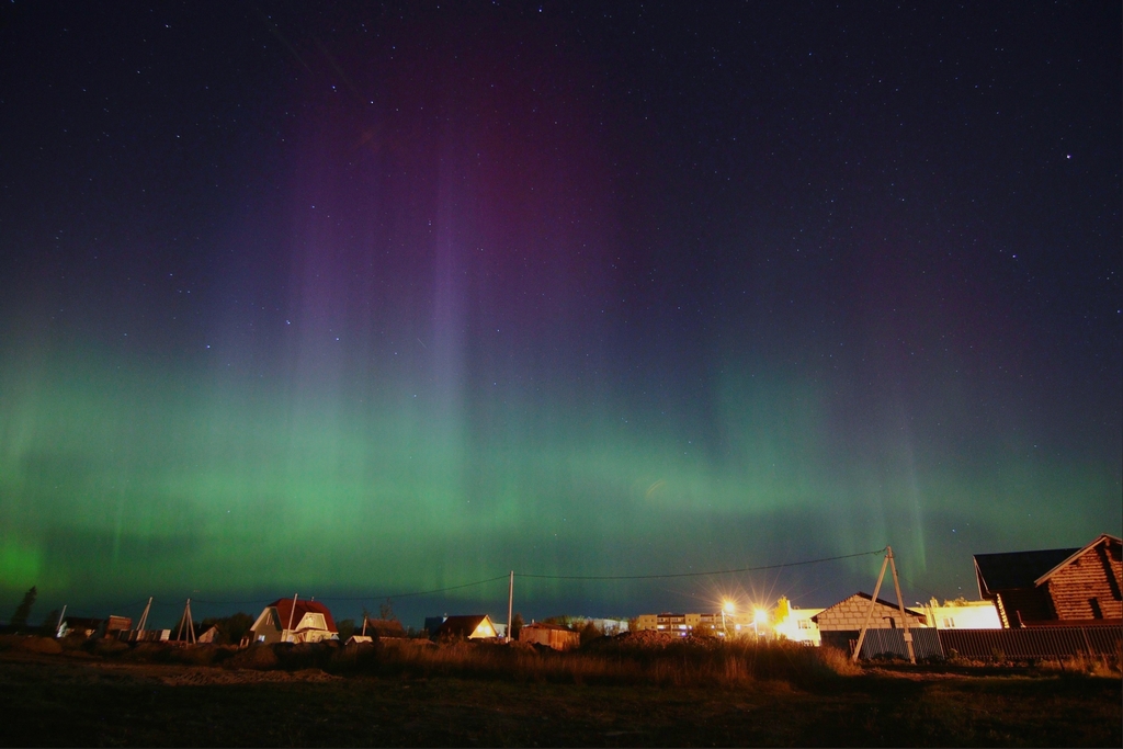 Северное сияние наблюдали по всей территории России в ночь с 18 на 19 сентября. В Вологодской области свечение было замечено в поселке Молочное под Вологдой, его сфотографировал астроном-любитель Андрей Малиновский.