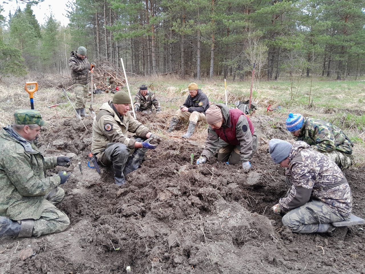 Тотьмичи, а также присоединившиеся к отряду жители областной столицы супруги Беловы тоже нашли красноармейца, но, к сожалению, именных вещей при нём не оказалось. Да и собирать останки человека пришлось буквально по кускам – об этом читайте дальше. Тем не менее, у каждого из 19 членов отряда «Застава Тотьма» под руководством Сергея Семенихина в сердцах поселились чувства облегчения, радости, гордости от того, что вахта памяти «Любань-2023» прошла не зря – ещё одна душа советского воина обретёт покой.