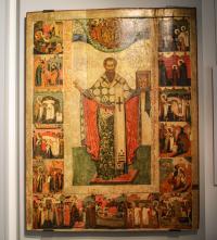 Мы расскажем вам о некоторых экспонатах, а начать хотим с памятника, который в некотором роде «открывает» выставку - икона «Святитель Стефан Пермский, с житием».