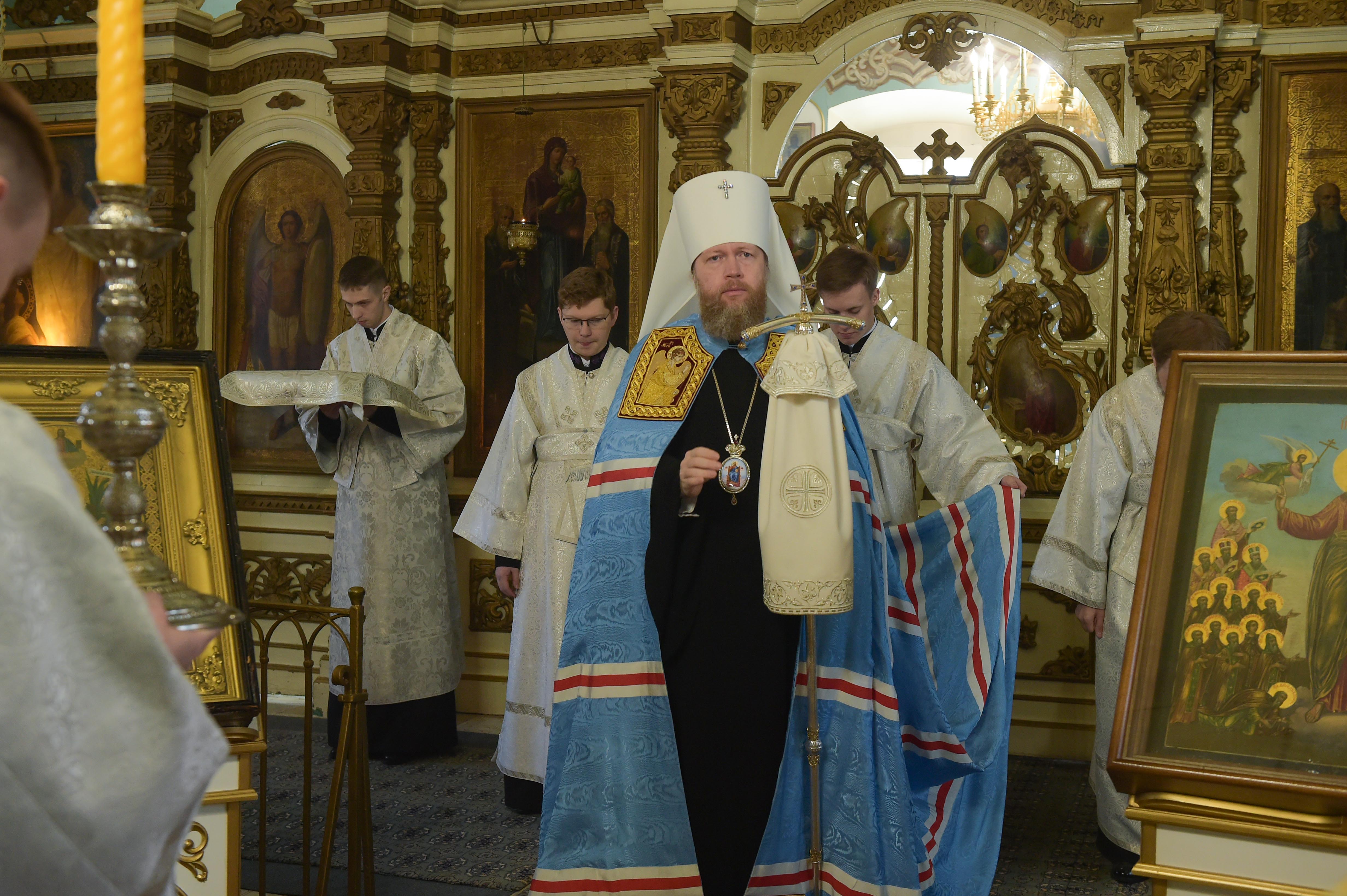 По отпусте Литургии архипастырь совместно с духовенством совершил славление. Диаконский состав возгласил величание святому праведному Лазарю Четверодневному.