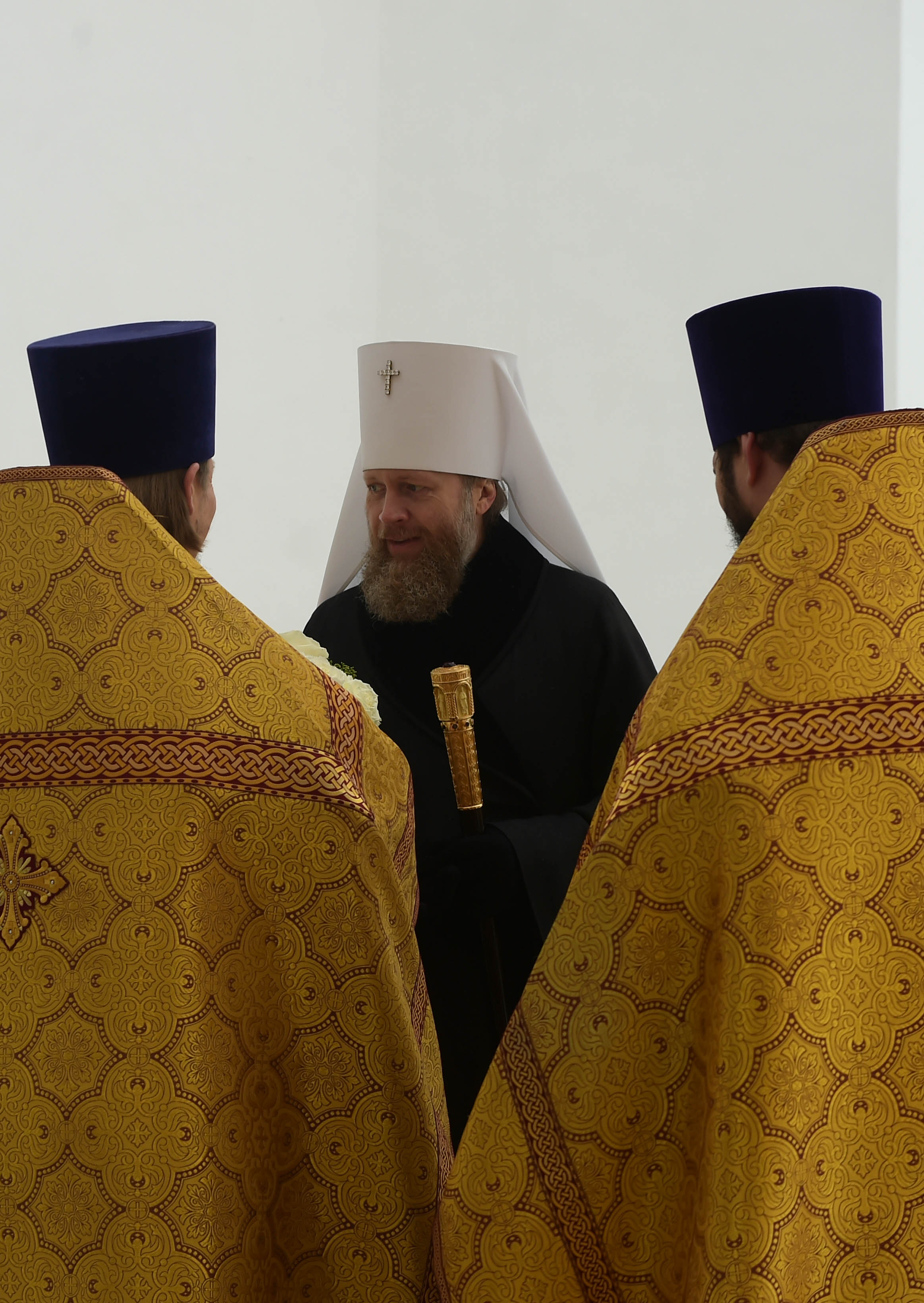 Его Высокопреосвященству сослужили: настоятель Воскресенского кафедрального собора протоиерей Андрей Смирнов, ключарь собора иерей Сергий Зяблицкий , руководитель Службы протокола Вологодской епархии иерей Андрей Кашинцев , клирики кафедрального собора иерей Артемий Денискин и иерей Виталий Макарявичус .