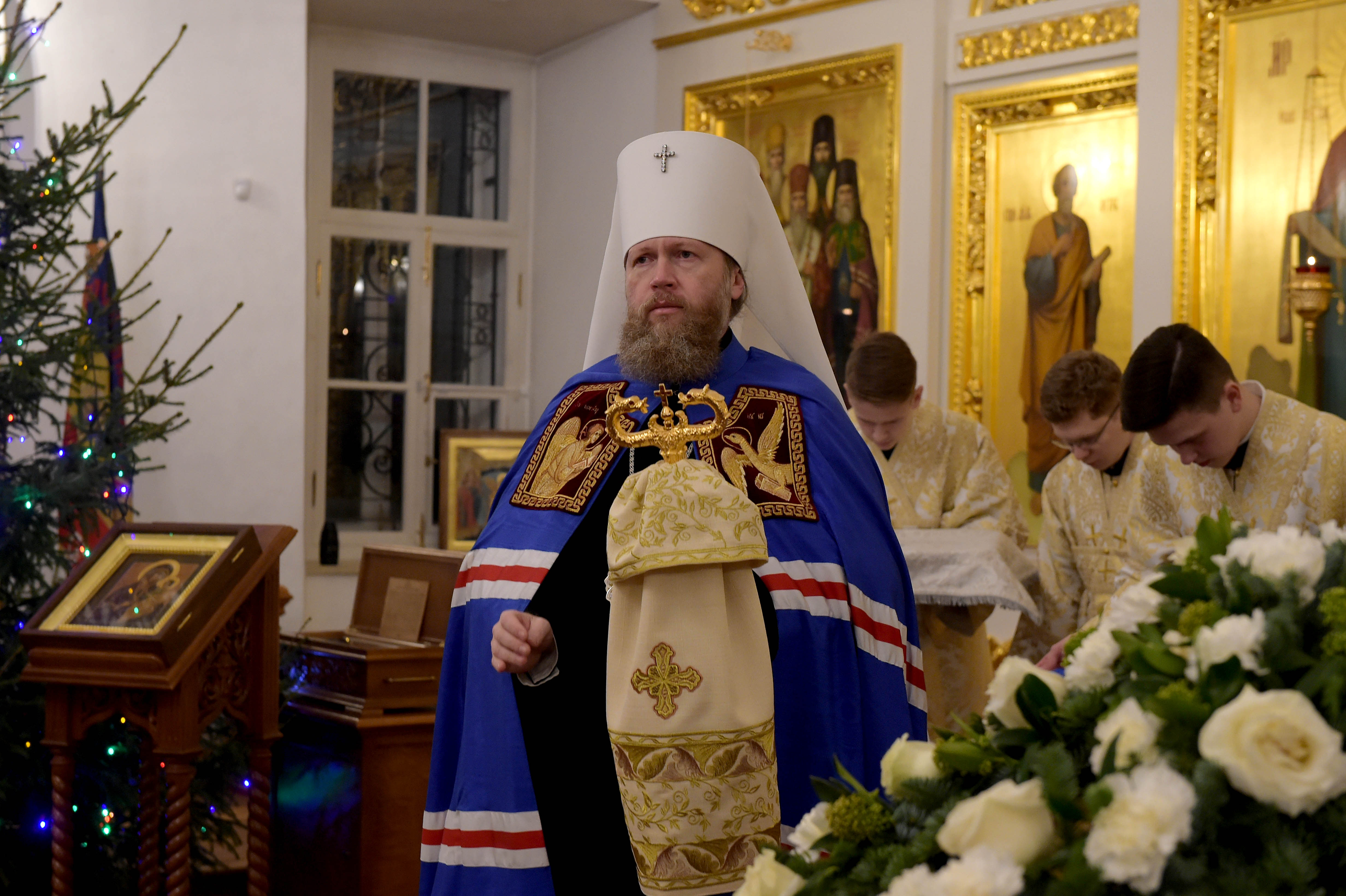 В Рождественскую ночь Его Высокопреосвященству сослужили: настоятель Воскресенского кафедрального собора города Вологды протоиерей Андрей Смирнов, ключарь собора иерей Сергий Зяблицкий, руководитель Службы протокола Вологодской епархии иерей Андрей Кашинцев.