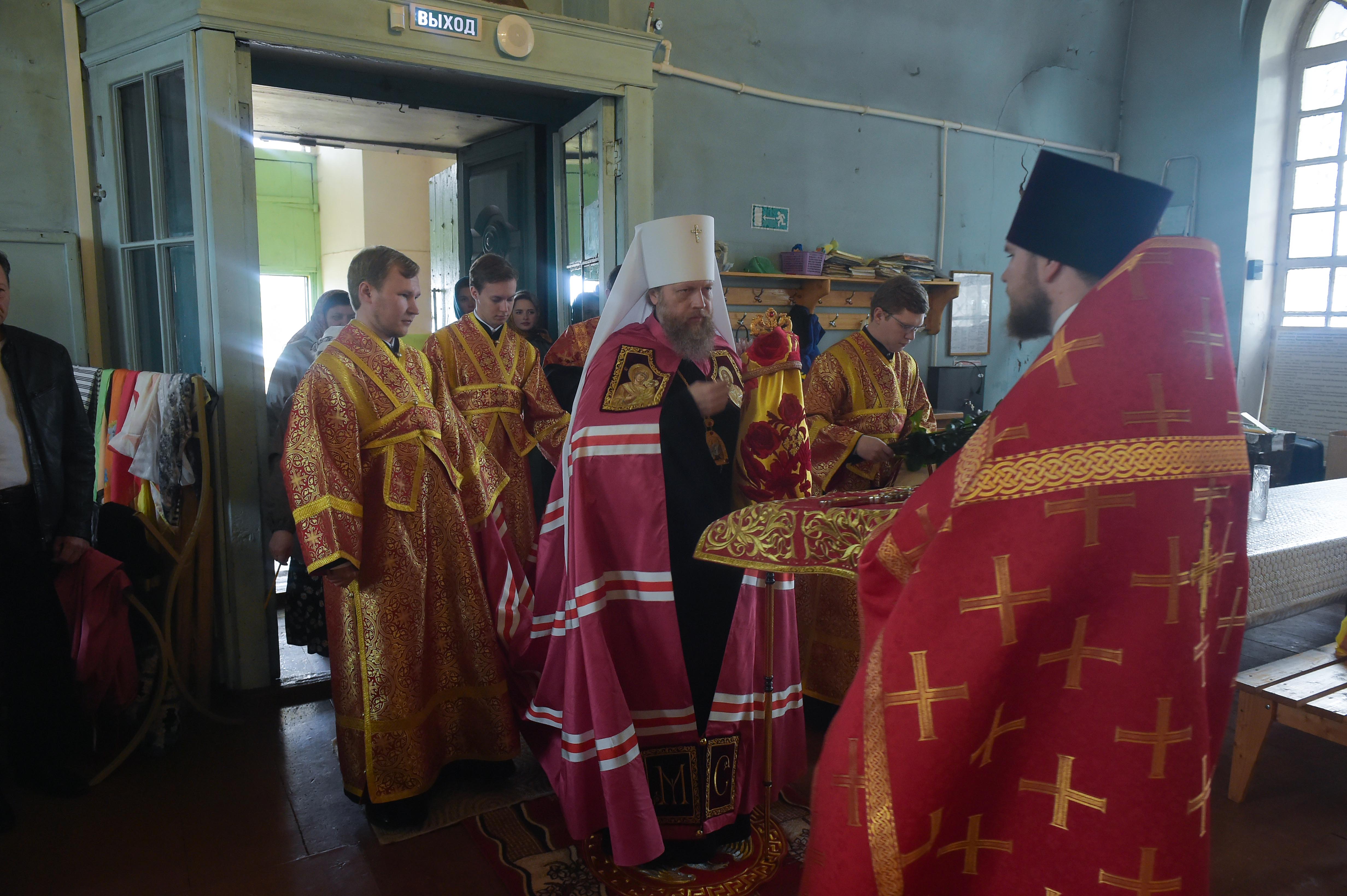 Архипастырю сослужили: благочинный Усть-Кубинского округа, настоятель храма святителя Афанасия Великого деревни Чирково иерей Михаил Пинаев, казначей Вологодского епархиального управления иерей Евгений Сизиков .