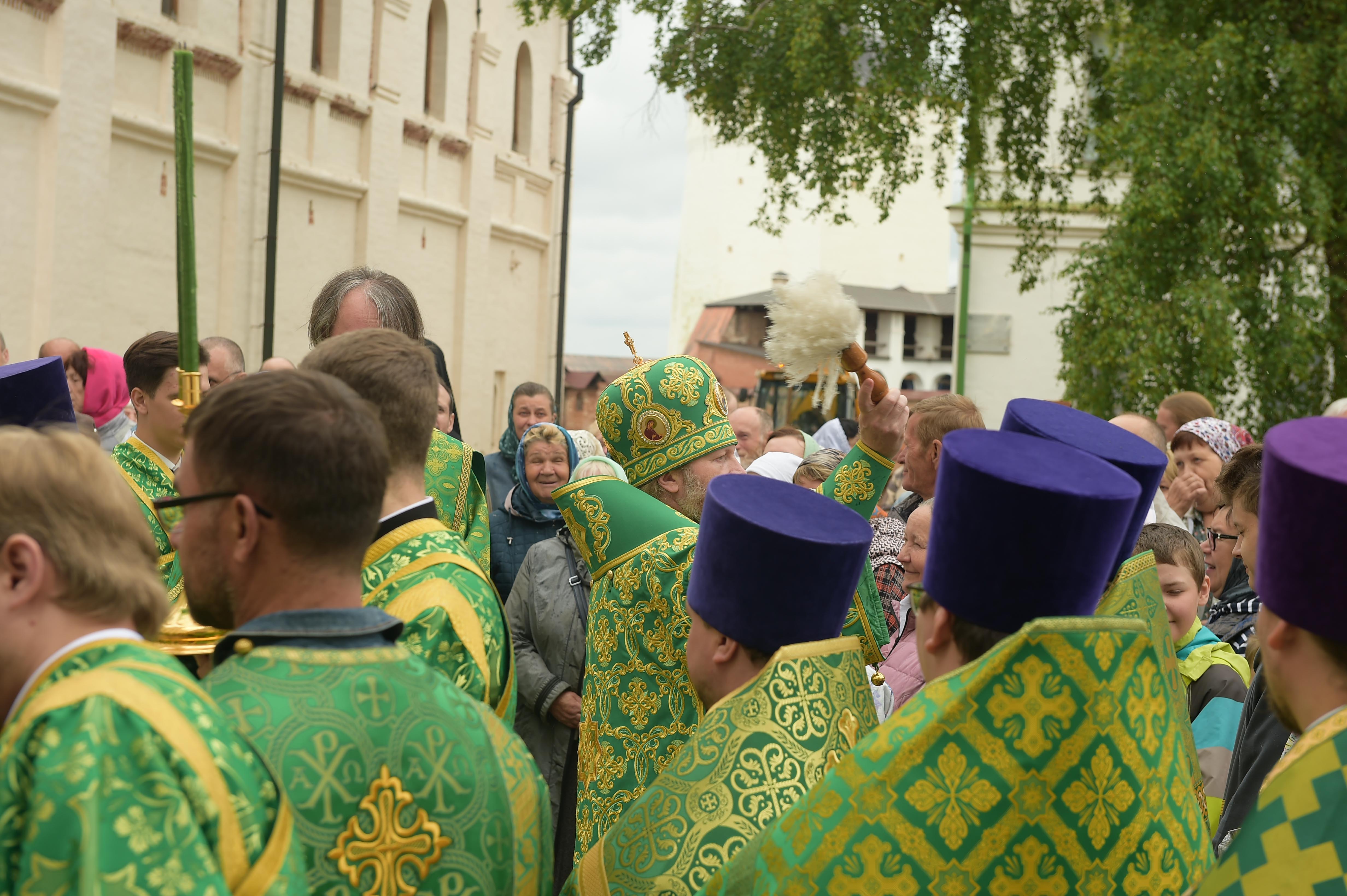 После причащения народа был совершен крестный ход вокруг храмового комплекса монастыря. Во время шествия владыка прочитал евангельский отрывок, затем духовенство окропило народ святой водой.