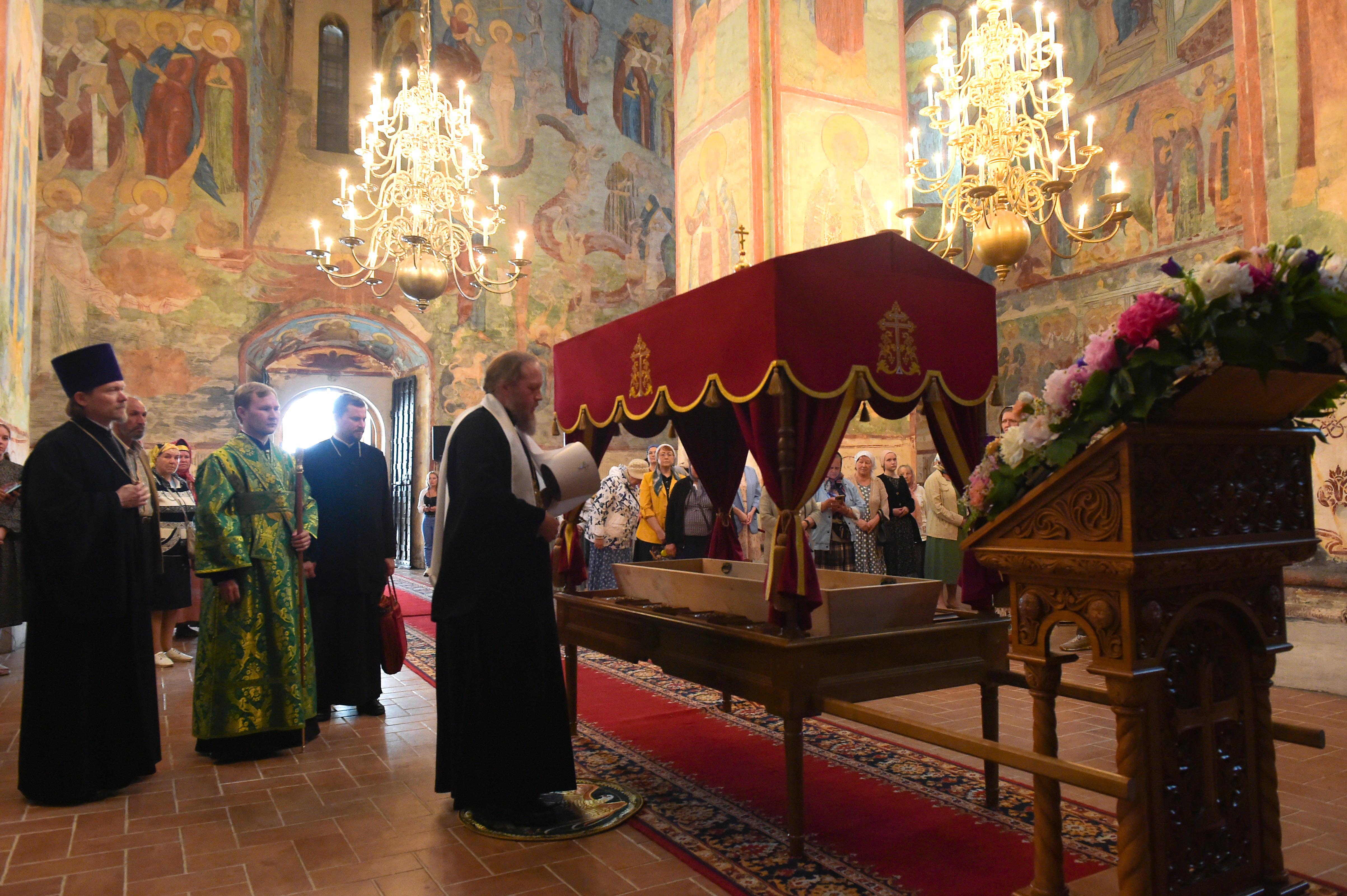 Перед началом богослужения из Воскресенского собора были перенесены мощи святого праведного Александра пресвитера Вологодского и положены в центре Софийского собора на специальноустроенный паланкин, предназначенный для перенесения святых мощей.
