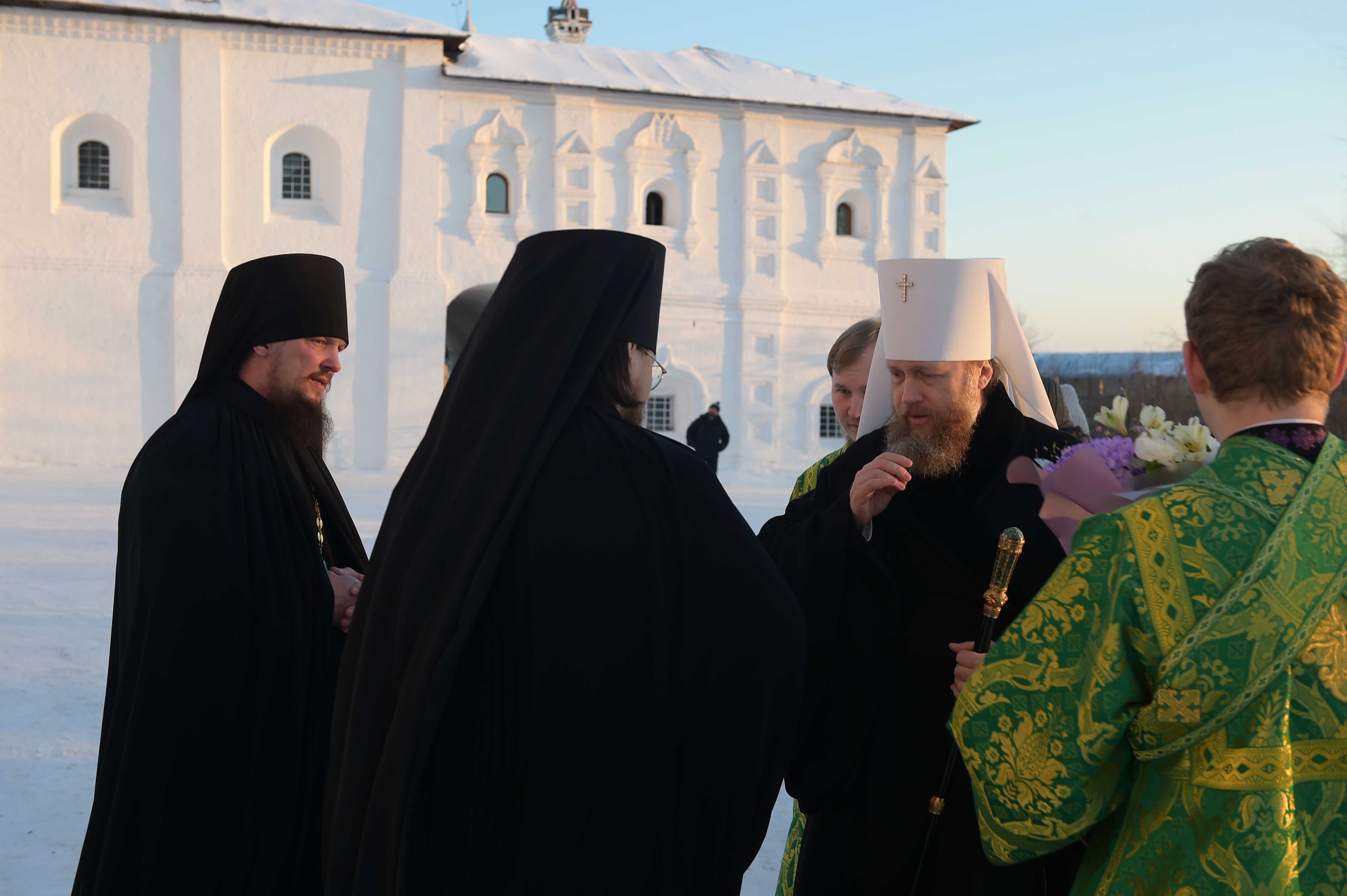 Правящему архиерею сослужили: исполняющий обязанности наместника Спасо-Прилуцкого монастыря иеромонах Ферапонт (Широков), настоятель Спасо-Каменного Преображенского монастыря игумен Дионисий (Воздвиженский), благочинный Спасо-Прилуцкого монастыря иеромонах Мартиниан (Киселев), руководитель Службы протокола Вологодской епархии иерей Андрей Кашинцев, келарь Спасо-Прилуцкой обители иеромонах Иларион (Свиридов), насельники монастыря иеромонах Онуфрий (Федюнцов) и иеромонах Тихон (Соколовский).