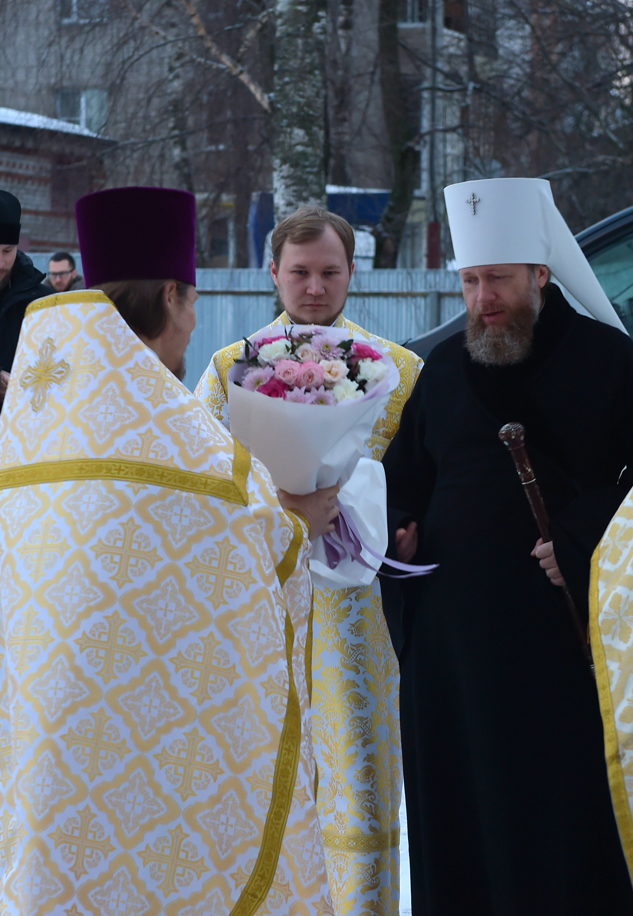 Правящему архиерею сослужили: благочинный Вологодского Северо-Западного округа, настоятель Константино-Еленинского храма протоиерей Андрей Смирнов, руководитель Службы протокола Вологодской епархии иерей Андрей Кашинцев, клирики Константино-Еленинского храма иерей Вадим Пирогов и иерей Евгений Рыжов.