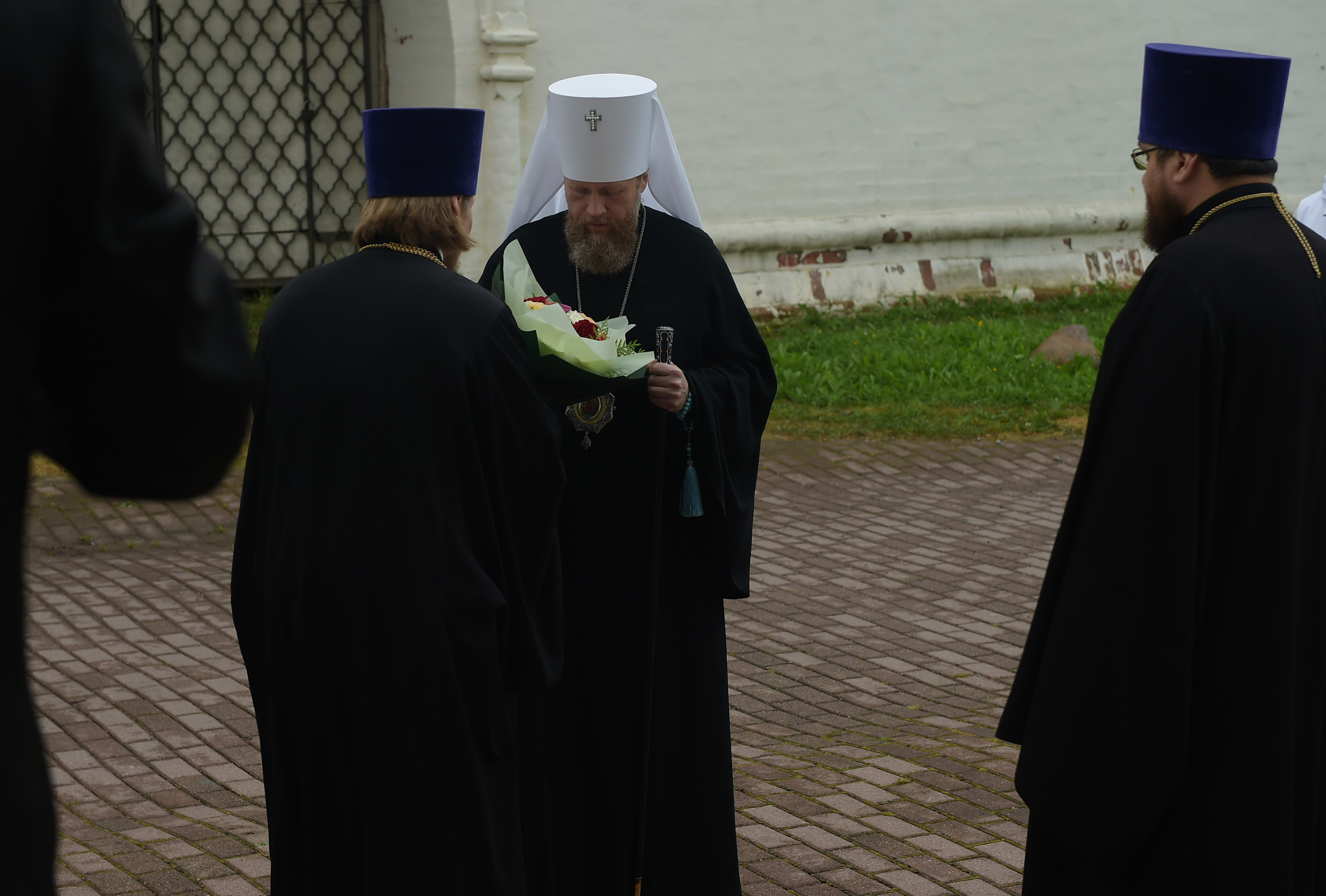 Его Высокопреосвященству сослужили: настоятель Софийского кафедрального собора протоиерей Андрей Смирнов, ректор Вологодской духовной семинарии протоиерей Алексий Ольховников , благочинный Северо-Восточного (Зареченского) округа г. Вологды протоиерей Андрей Исаев , настоятель храма святых апостолов Петра и Павла в Новинках г. Вологды протоиерей Александр Юшкин, ключарь собора иерей Сергий Зяблицкий , клирик Великоустюжской епархии иерей Димитрий Рыжков, руководитель Службы делопроизводства Вологодской епархии иерей Игорь Шипицын , келарь Спасо-Прилуцкого монастыря г. Вологды иеромонах Иларион (Свиридов), клирики кафедрального собора иерей Артемий Денискин и иерей Виталий Макарявичус .