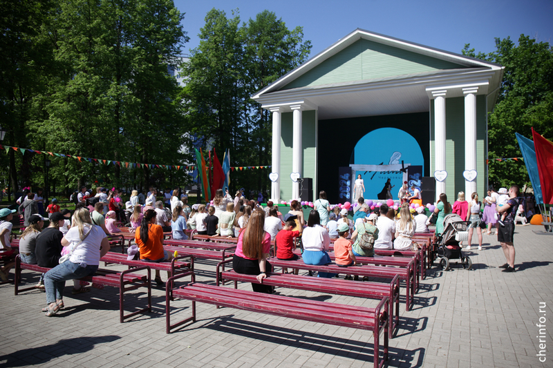 В парке выступили 80 молодых мам. Все они участницы социального проекта «Мама Череповца». Тема финальных номеров — материнство, каждый номер — микс песен, танцев, театральных сценок.